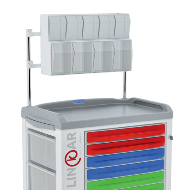 Vergroot de functionaliteit van onze trolleys door verschillende accessoires toe te voegen, zoals een stootrand, een plateau voor de laptop, een afvalbak, houders voor handschoenen, infuus, naaldenbox, zeeppompjes of alcohol. Op die manier kunt u uw medische trolley geheel passend maken op de wensen en behoeften van uw afdeling.