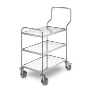Elk type serveerkar in ons assortiment is uiterst hygiënisch schoon te maken. Dankzij de naadloos gelaste onderdelen zijn de wagens eenvoudig te reinigen en steriliseren. De gebogen randen van elk schap voorkomen dat vuil zich in de hoekjes ophoopt.