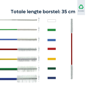 Wanneer de borstel door een kanaal wordt geleid, beweegt hij soepel mee zonder zijn reinigende werking te verliezen. Dit maakt hem ideaal voor het reinigen van kwetsbare, moeilijk toegankelijke delen van medische apparatuur. Gemaakt van hoogwaardige materialen garandeert de borstel een veilige reiniging zonder het instrumentarium te beschadigen. Hierdoor wordt niet alleen de levensduur van de instrumenten verlengd, maar ook een optimale voorbereiding op het sterilisatieproces gewaarborgd.