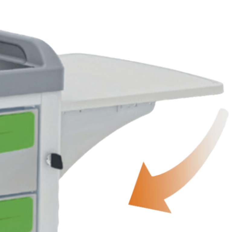 Bij de medische trolleys van Malvestio is het mogelijk om een uitklapbaar werkblad bij te bestellen, wat als aanzienlijke toevoeging gezien kan worden en ook nog een bijdraagt aan de functionaliteit en flexibiliteit van de trolley. Dit werkblad kan gemakkelijk worden uitgeklapt, wanneer extra ruimte nodig is voor bijvoorbeeld een medische ingreep. Daarnaast kan dit werkblad ook zo gemakkelijk worden ingeklapt om de breedte van de trolley te beperken tijdens het transporteren. Door het materiaal van het werkblad is deze gemakkelijk te reinigen, wat van groot belang is binnen de medische wereld, kijkend naar hygiëne. Doordat het werkblad kan worden ingeklapt, beperkt dit de breedte van de wagen en verbetert dit de manoeuvreerbaarheid, dan wanneer het werkblad altijd uitgeklapt zou zijn. Een zeer ideale toevoeging voor het creëren van meer werkruimte dus.