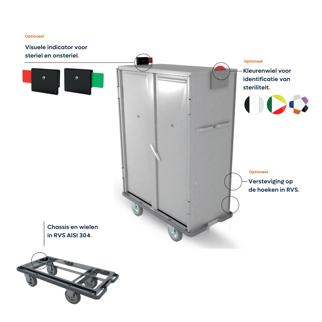Schoon linnen transportwagen. Ideaal voor het vervoeren van schoon wasgoed, steriele sets en overalls in ziekenhuizen en zorginstellingen.