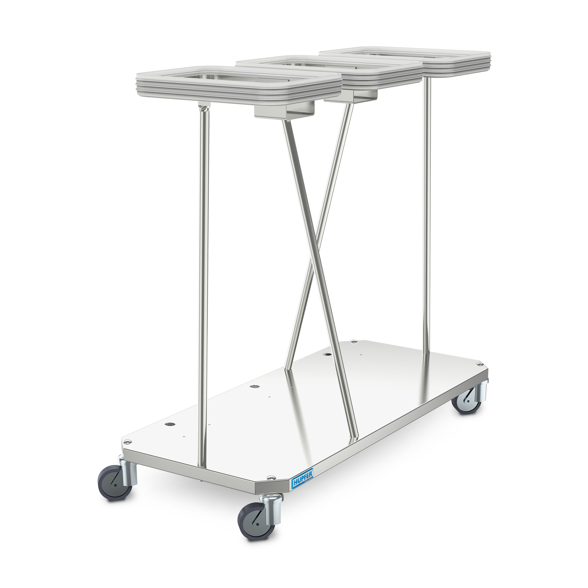 Uitvoerbaar in 1-voudig, 2-voudig en 3-voudig. Te gebruiken voor opname en transport van afval of vuile was in universele transportzakken.