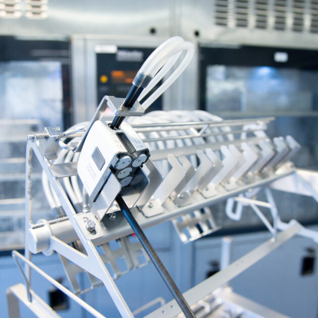 De Da Vinci®-instrumenten zijn niet geschikt voor de standaard draadmanden – wat betreft de afmetingen – die normaal gebruikt worden voor reiniging. Daarom was het noodzakelijk om speciaal daarvoor geschikte manden én bijpassende transportkarren aan te schaffen. Zonder deze voorzieningen zouden zowel de sterilisatie als het veilige transport van het instrumentarium niet mogelijk zijn. We moesten goed nadenken over de vraag: hoe zorgen we ervoor dat deze kwetsbare instrumenten na sterilisatie onbeschadigd en gebruiksklaar op de OK aankomen?