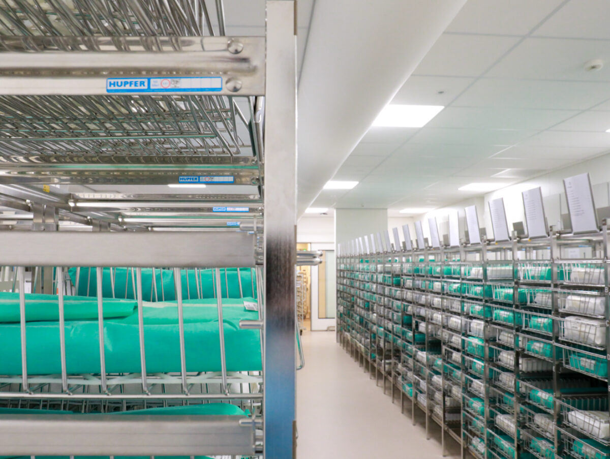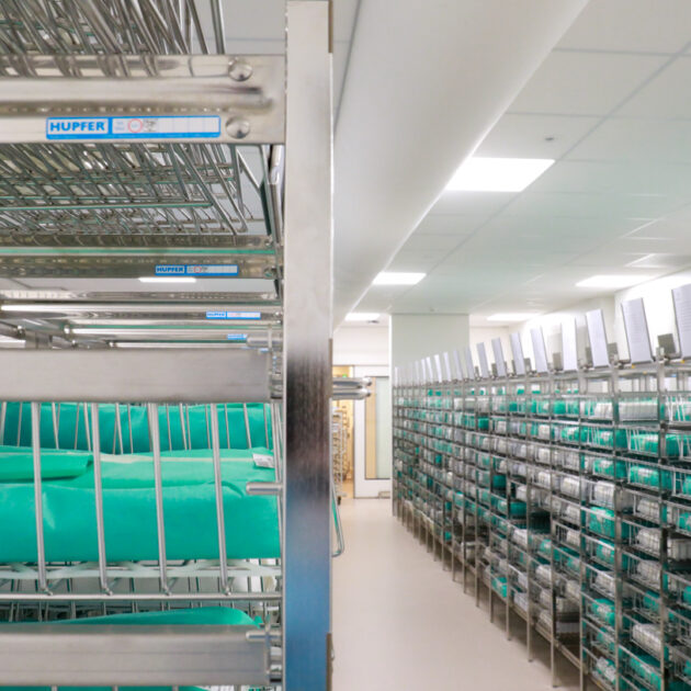De roestvrijstalen opbergrekken van Hupfer zijn speciaal ontworpen voor steriele benodigdheden en chirurgische opslag. Deze gespecialiseerde focus zorgt ervoor dat medische benodigdheden op een georganiseerde en veilige manier worden opgeslagen. Accessoires zoals tussenschotten, sets van inlegframes, zijpanelen, achterpanelen en onderstellen voor Medidul-planken vergroten de aanpasbaarheid alleen maar meer. Hierdoor voldoen de stellingen zelfs aan de meest unieke opslagbehoefte. Of het nu gaat om klein chirurgisch instrumentarium of grote dozen en langwerpig materiaal.